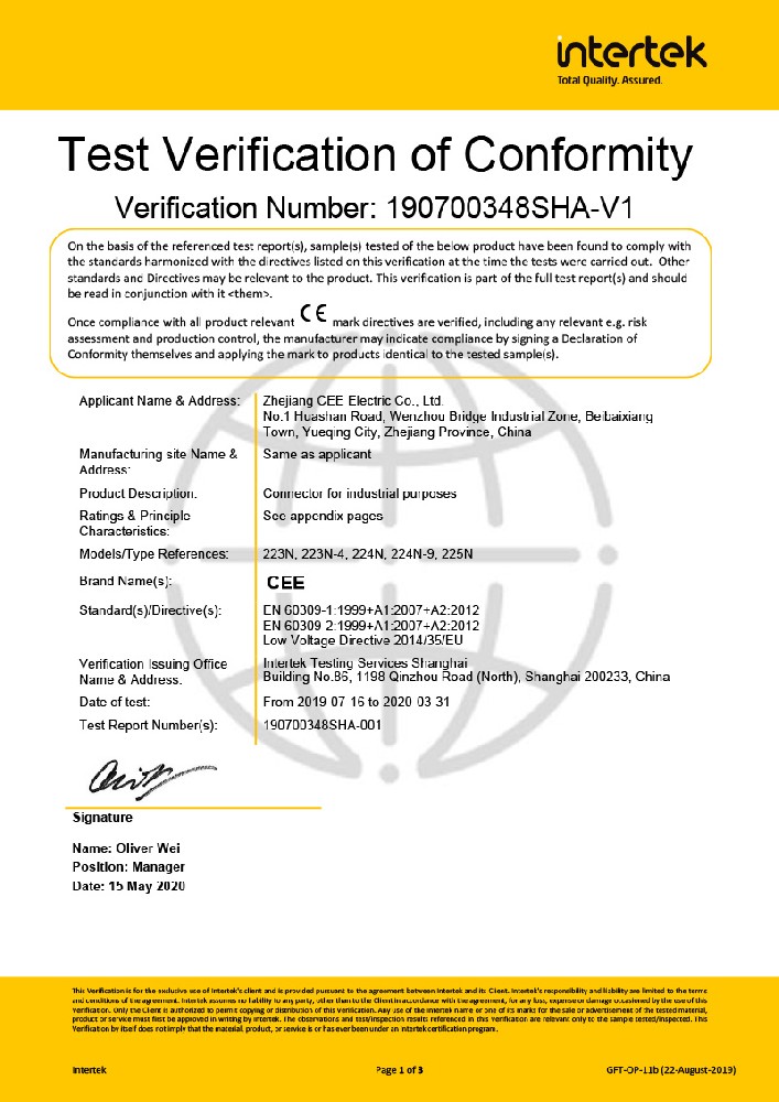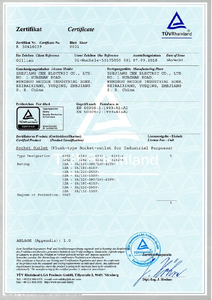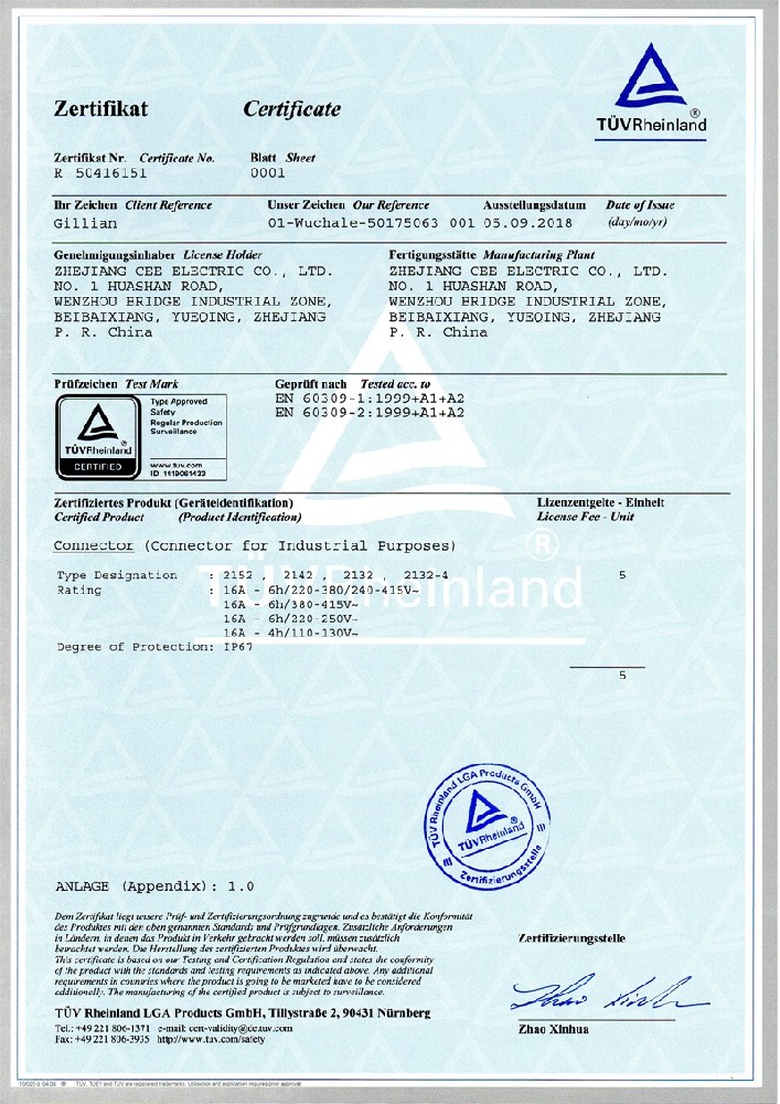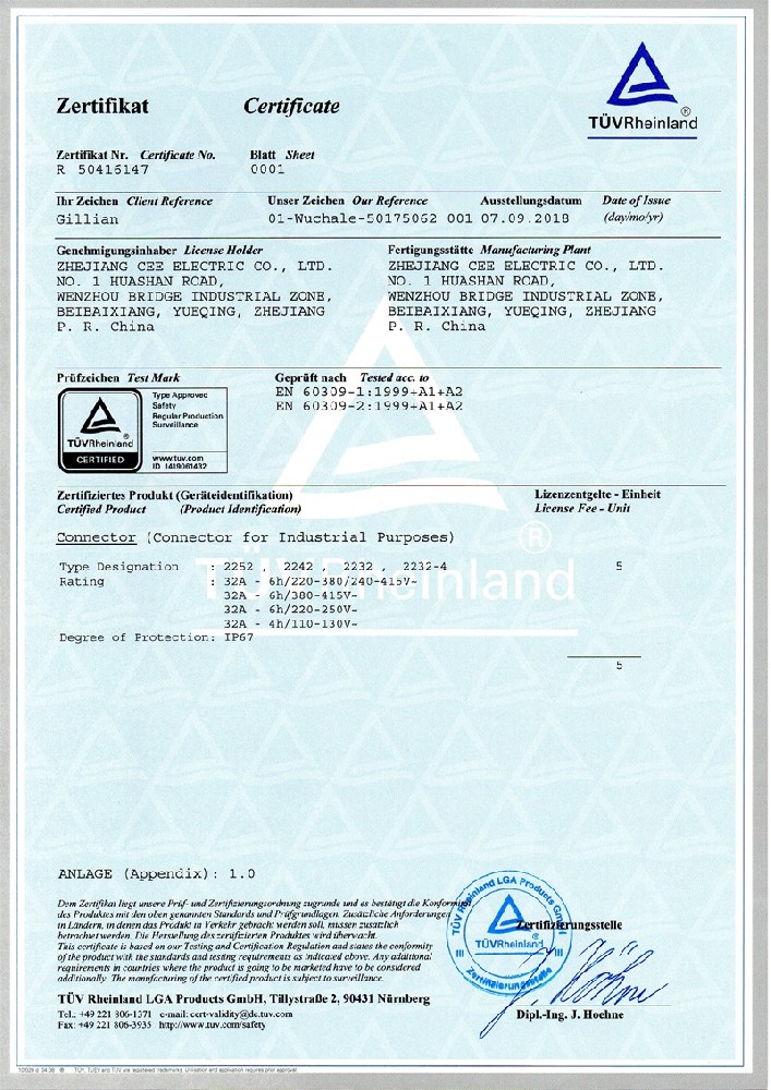 品質(zhì)合規(guī)方面,公司全面推行ISO9001:2015質(zhì)量管理體系,核心產(chǎn)品符合IEC 60309-1-2、EN 60309-1-2等國(guó)際標(biāo)準(zhǔn),通過(guò)Intertek、TUV Rheinland、CQC等權(quán)威機(jī)構(gòu)認(rèn)證,持有TUV、SEMKO、CE、CCC等多項(xiàng)資質(zhì)證書,且完全滿足RoHS、Reach等國(guó)際法規(guī)要求。